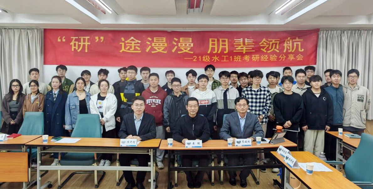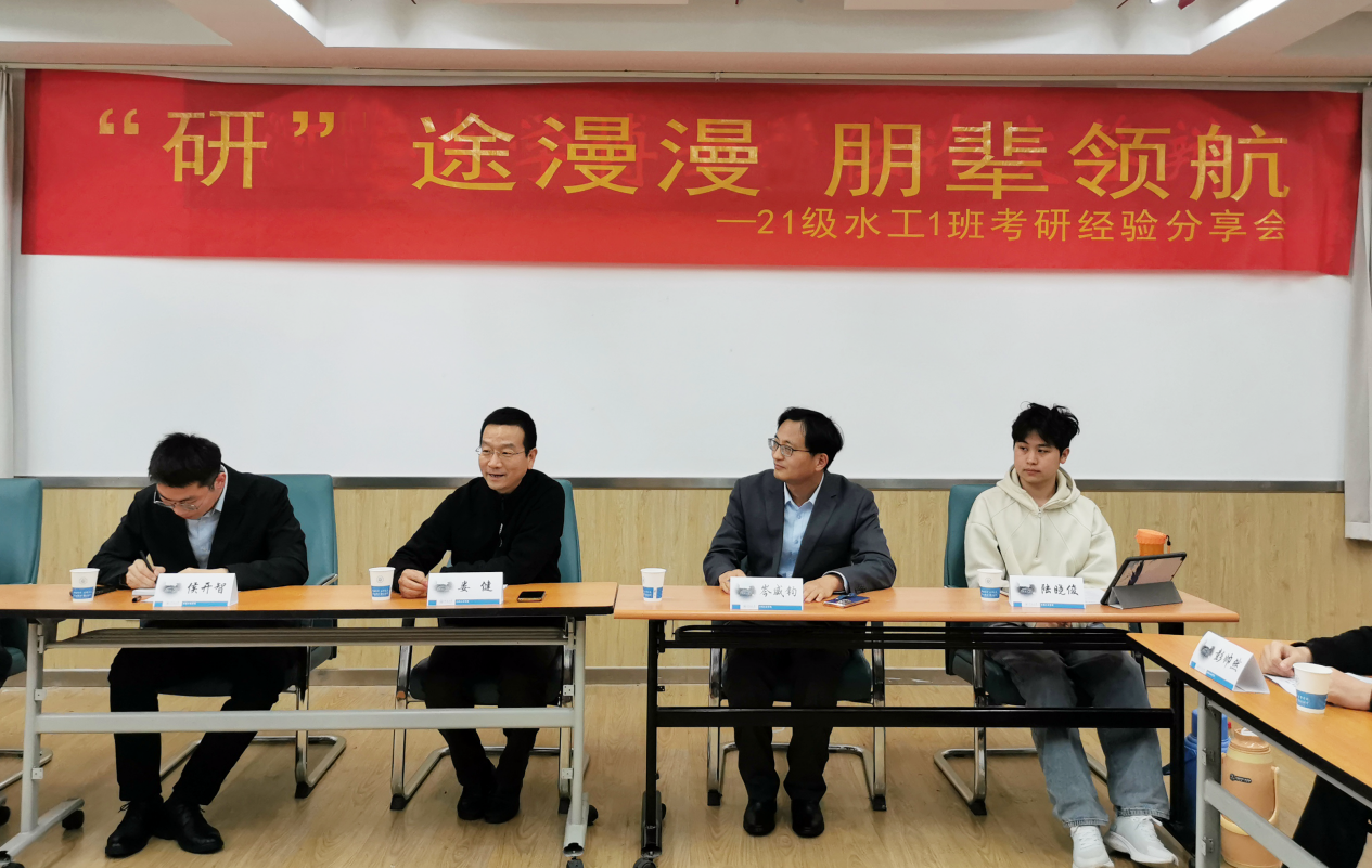 4月9日下午,娄健书记参加结对联系班级——2021级水工1班 “研途漫漫,朋辈领航”考研经验分享会,并与同学们座谈交流。班导师岑威钧老师、辅导员侯开智老师出席班会。本次班会邀请2021级研究生曹艺凡和廖承涛、2020级本科生陆晓俊、万梓强和彭帅然五位学长分享读研经验,班会由陈贤博主持。