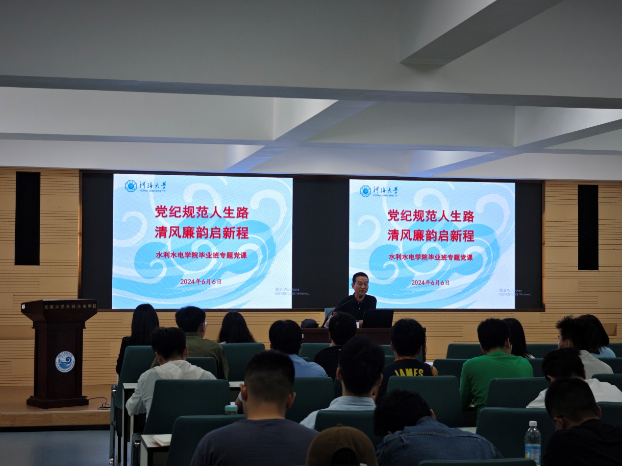 6月6日,公司党委书记娄健以《党纪规范人生路,清风廉政启新程》为题,为全体2024届毕业生党员讲授毕业生廉洁专题党课。党课由公司党委副书记戴媛媛主持,院团委书记笪步源、全体毕业生党员参加。