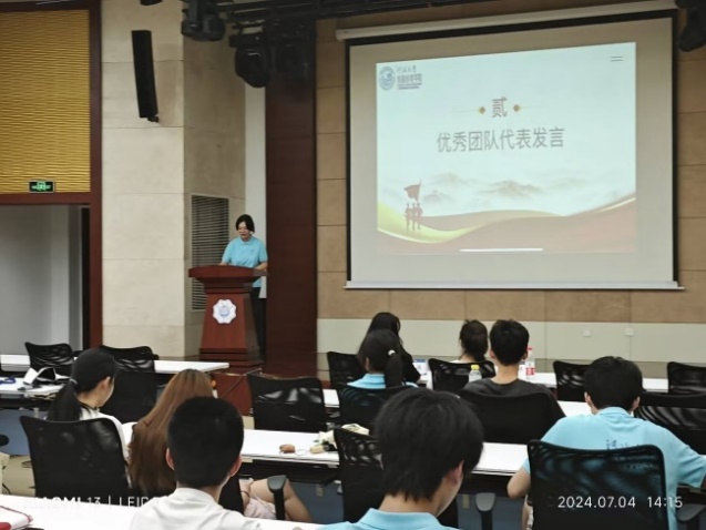 校级团队员工代表孙萌讲述了自己对于社会实践的理解,能够与团队成员并肩作战,共同解决问题,不仅将加深团队成员之间的友谊,更将培养合作能力和创新精神,深入了解所学专业的实际运作,明确自己的职业定位和发展方向。