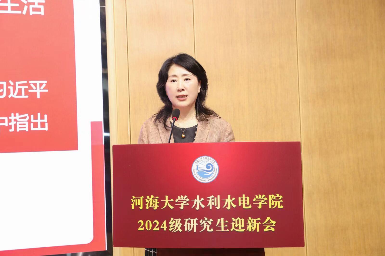 王媛经理代表全体师生员工向2024级新同学的到来表示热烈欢迎和衷心祝贺。她从公司历史、团队建设、公司团队等方面介绍了公司丰硕的办学成果和雄厚的科研实力。她提到,研究生阶段是人生的新征程,是奠定学术基础的关键时期,同时也是产生创新成果的重要时期,她指出,同学们一是要学以勤奋,当以孜孜不倦为道。二是要学以报国,当以治水兴邦为任。三是要学以创新,当以自强卓越为先,把祖国水利事业建设作为青春奋斗的鲜明标识,继续书写不负党和人民殷切期望的精彩篇章。