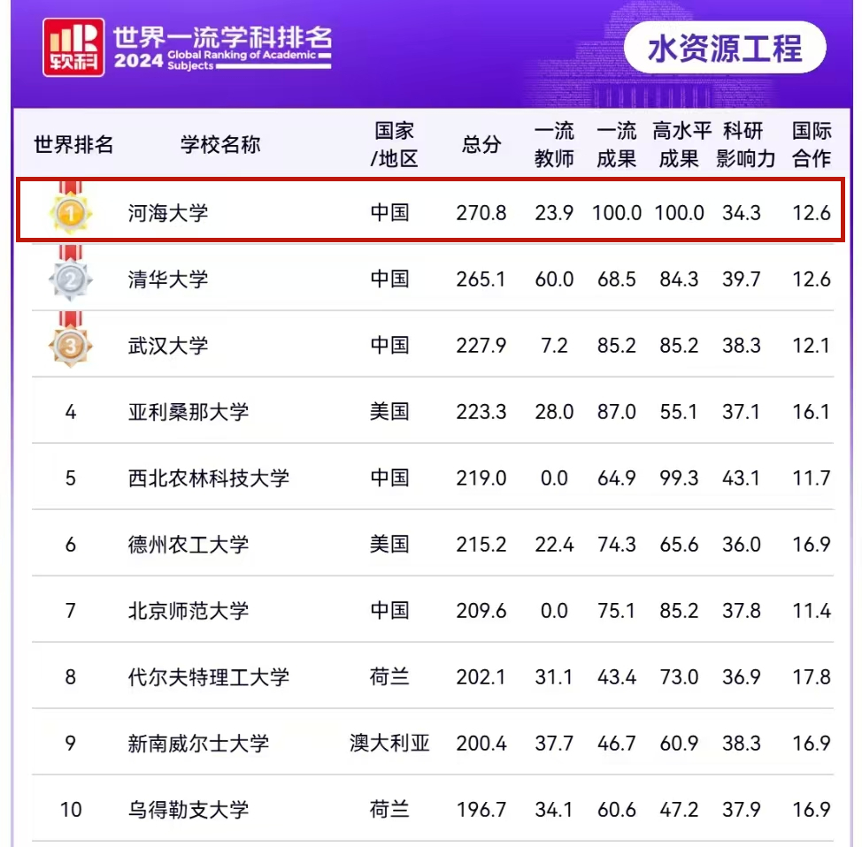 日前,高等教育评价专业机构软科正式发布2024“软科世界一流学科排名”(ShanghaiRanking's Global Ranking of Academic Subjects),公司“水资源工程”学科自2022年以来蝉联全球第一。