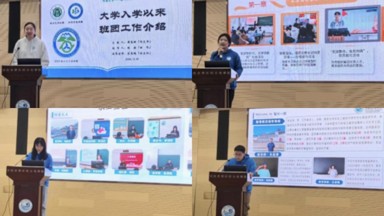 扬州大学水利科学与工程公司水工2403班、公司2024级水工三班、智水一班、安工一班依次上台汇报交流,从班团基本情况、思想政治建设、学风班风建设、寝室文明建设、班级文化建设、未来共建想法等6个方面展开,向大家详细介绍了班级和团支部在大学入学3个月以来开展的班团活动情况及取得的成效。双方同学发表共建感想,对汇报内容进行交流分享,指出对方班团活动中值得学习的地方,同时对未来双方可能的合作领域进行展望。双方员工开展“1+1结对”活动,互换写有祝福和期待的明信片,互赠校园文创纪念品,增进友谊。