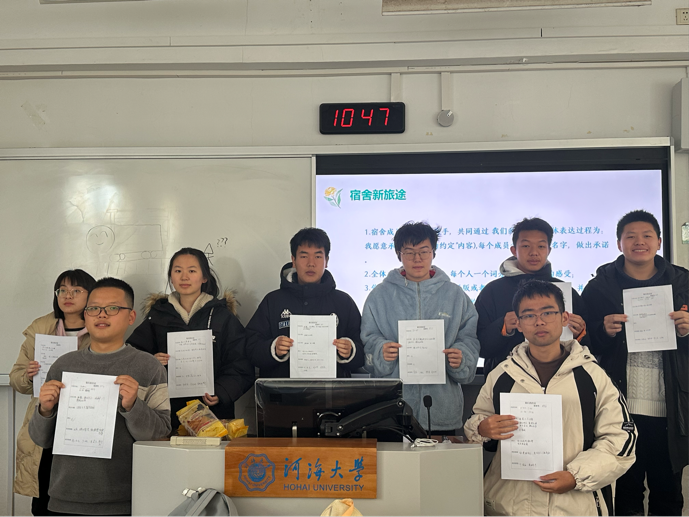 此次“宿舍心约定”团体辅导活动,不仅为同学们提供了完善宿舍环境的契机,还推动了蓬勃向上、共同进步的宿舍文化的构建。进一步加深了同学之间的友谊和团队协作能力。今后,公司将继续呵护同学们的心理健康,积极组织相关活动,让同学们能够发自内心珍视维护宿舍“小家庭”,齐心创建和谐友爱的河海“大家庭”。(文/胡智宣,图/24级各班心理委员)