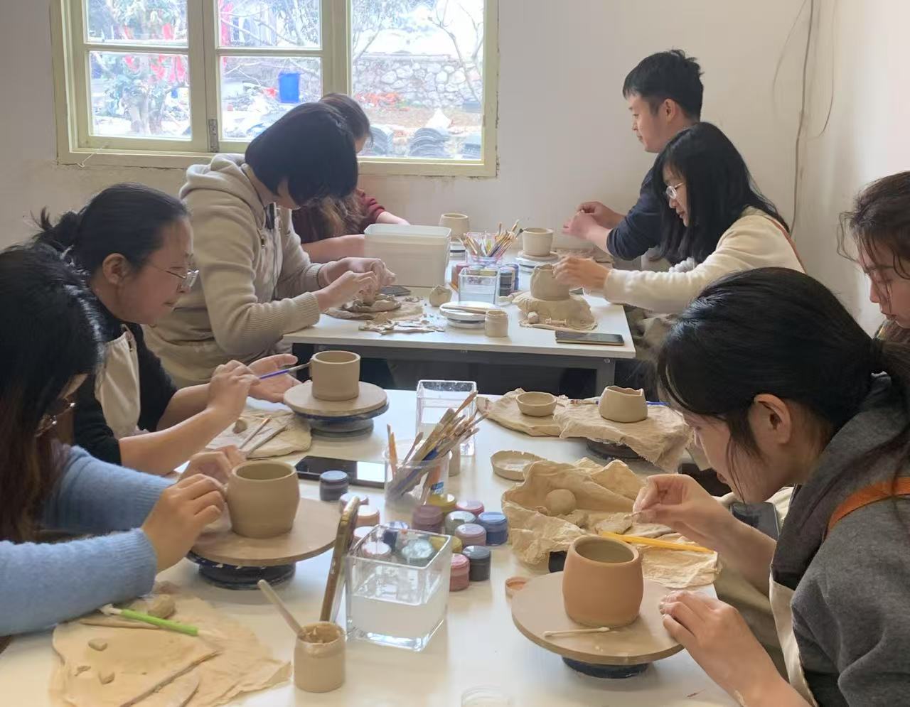此次活动中安排了丰富的手作体验活动,有手工陶艺、窑烤面包以及咖啡拉花三大主题。在陶艺老师的指导下,老师们亲手揉捏陶土,感受泥土在指尖流动的温度;专业咖啡师教授学员运用奶泡勾绘爱心、花朵等图案,老师们亲手创作专属自己的拉花咖啡,体验“一杯一世界”的精致生活美学;参与窑烤面包体验的老师们在柴火窑炉旁学习天然酵种面包制作,从揉面、割包到窑烤全程参与,品味麦香与果木香交融的原始风味,传递“慢食生活”的健康理念。
