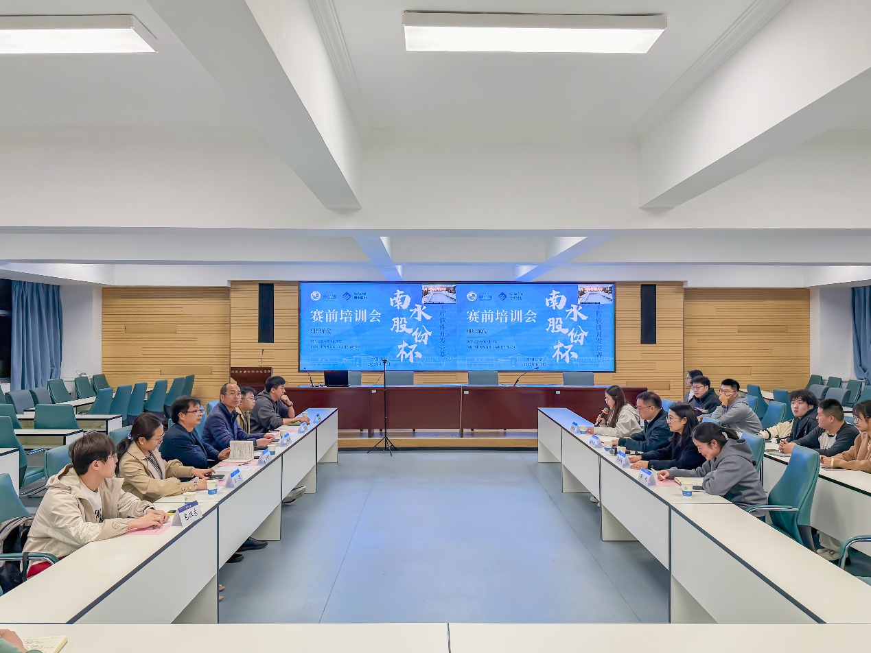 42日,PA视讯官方网站举办首届“南水股份杯”水工程软件开发竞赛赛前培训会本次培训会由南京市水利规划设计院股份有限公司(以下简称“南水股份”)与PA视讯官方网站联合主办,南水股份公司领导专家余代广、王献辉、王伟、李昆朋、包振东、陈明炤出席培训会,公司副经理俞晓东、党委副书记戴媛媛、团委书记笪步源、本科生辅导员陈辰、参赛员工指导教师共同参与培训会设置西康路校区主会场,江宁校区和常州校区设分会场线上参会,会议由笪步源主持。