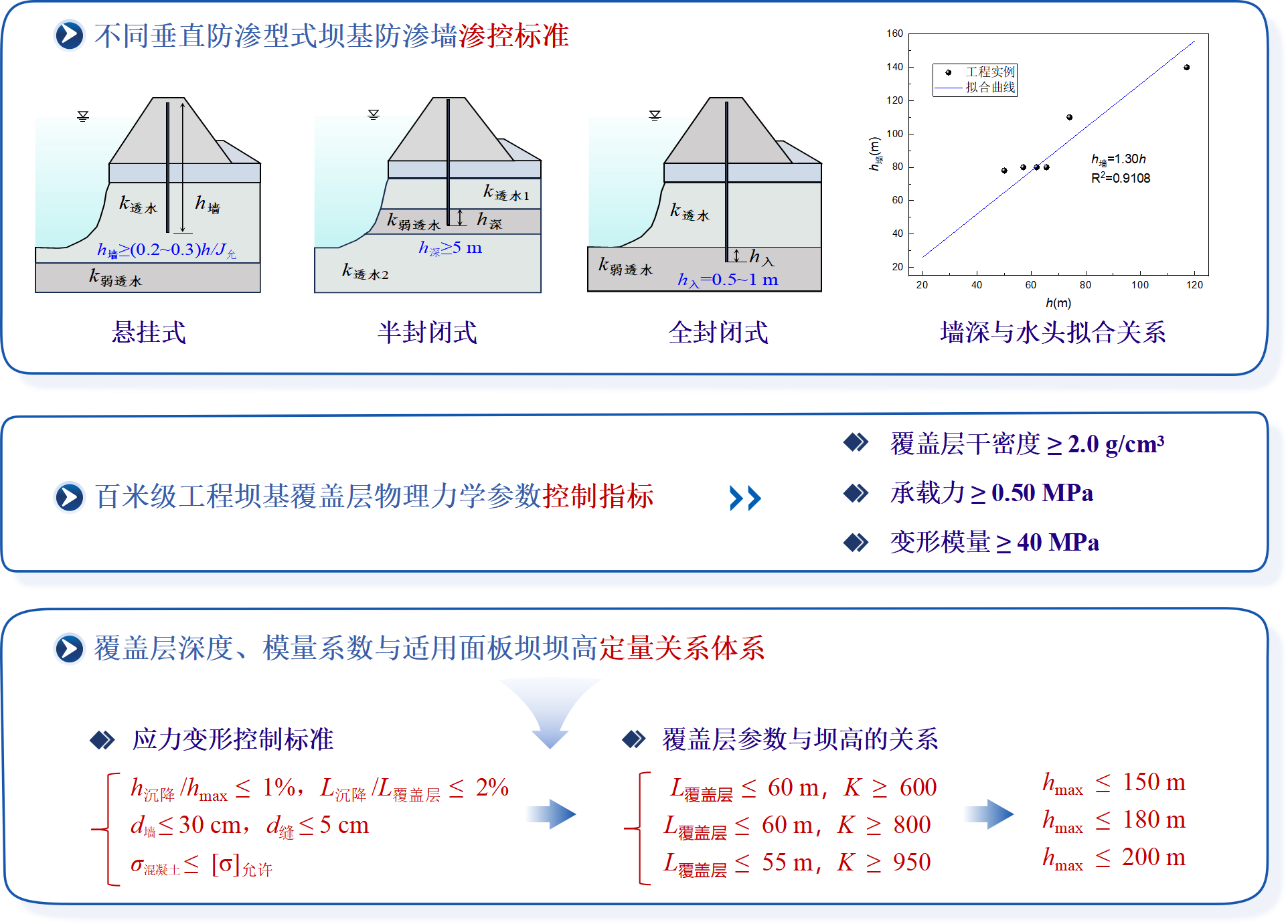 1.研发了深厚覆盖层高面板坝防渗系统“柔性”连接型式及防渗效果评价方法