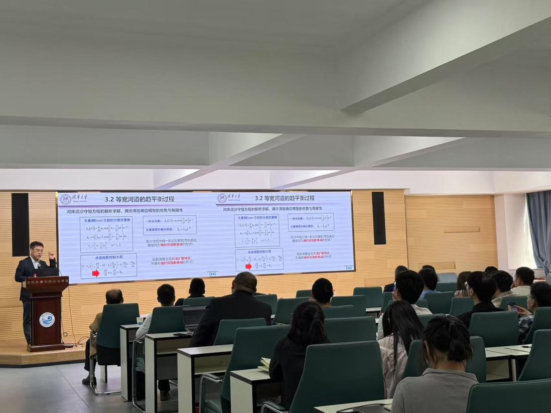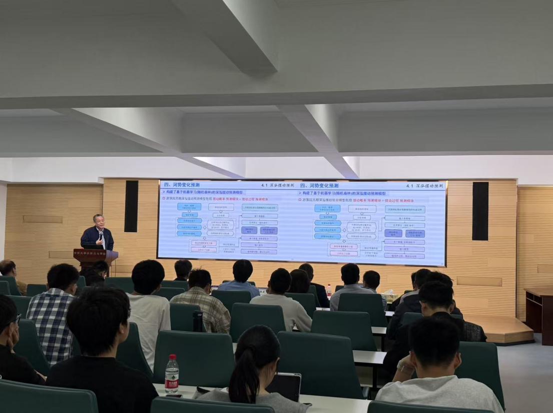 在特邀专家汇报环节,清华大学傅旭东教授作《山区河流形貌动力学发展与应用》主题报告,指出山区河流水沙输移机制特殊,提出了统一描述山区—平原河流的阻力公式,揭示了推移质魔术沙效应的物理机制,阐明了地震地质灾害对山前河流演变的系统影响,为山区河流治理提供了新的理论支撑;武汉大学夏军强教授作《黄河下游游荡段河势变化预测技术》主题报告,详细分析了黄河下游游荡段河床演变的复杂特性,提出基于数值模拟的河势变化预测方法,为提升黄河防洪安全与治理能力提出了创新思路;四川大学张建民教授作《高坝工程多股多层组合消能技术与应用》主题报告,针对大流量集中泄洪条件下的复杂流态控制与消能防冲问题,提出了新型多股多层组合消能技术,为高坝工程安全运行提供了有效保障;浙江大学郑飞飞教授作《城市入河雨水管道的复杂水动力过程研究》主题报告,结合模型实验与数值模拟,系统揭示了城市洪涝防控中的关键水动力机制,为提升城市排水系统抗灾能力提供了理论依据。随后在青年学者交流环节,PA视讯官方网站贺蔚教授和蒋晟教授分别进行汇报,并与在座专家学者进行了交流与探讨。