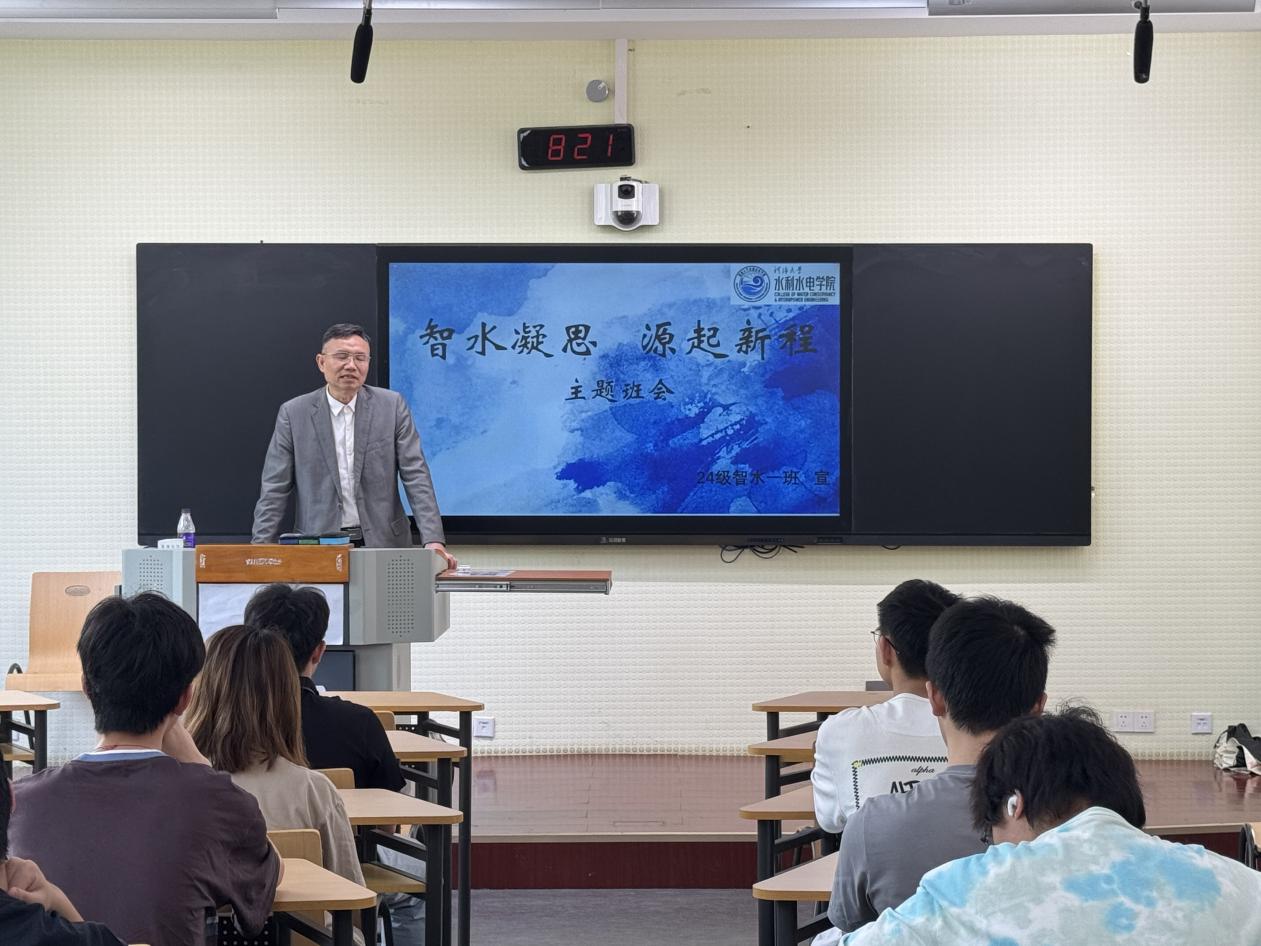 为深化专业认知、凝聚班级力量,PA视讯官方网站2024级智水一班与智水二班于PA视讯官方网站江宁校区开展主题班会。淮河水利委员会水文局原局长钱名开、PA视讯官方网站党委宣传部部长魏有兴出席并讲话,智慧水利系主任、智水二班班导师许栋、智水一班班导师朱延涛、辅导员笪步源及班级全体员工参与,班会通过经验分享与互动交流,共话成长方向。