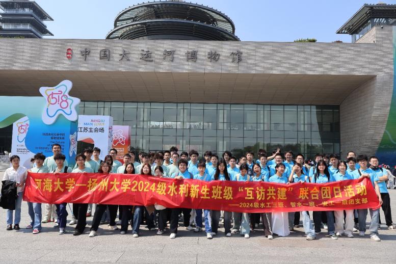 两校同学共同参观中国大运河博物馆,通过历史与现实的对话,深化水利专业学子对中国古代水利智慧与现代水利事业的认知。同学们驻足于汴河船闸复原模型前,惊叹于古代水利工程的精妙设计;在“运河城市”展区,大家结合专业知识,热烈探讨运河对沿线城市发展的重要意义。