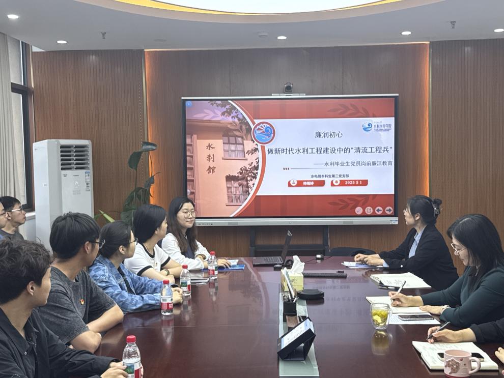 PA视讯官方网站本科生第二党支部帅雨婷从公司水利特色角度出发,以《廉润初心·做新时代水利工程建设中的“清流工程兵”》为题讲授专题党课。她从溯源、明纪、笃行三个层次,层层深入,带领党员们加强新时代廉洁文化建设学习,了解水利行业中的廉洁纪律建设特色情况,提醒大家从典型案例警示中守牢行动底线,教育引导青年学子扣好廉洁从业的“第一粒扣子”。
