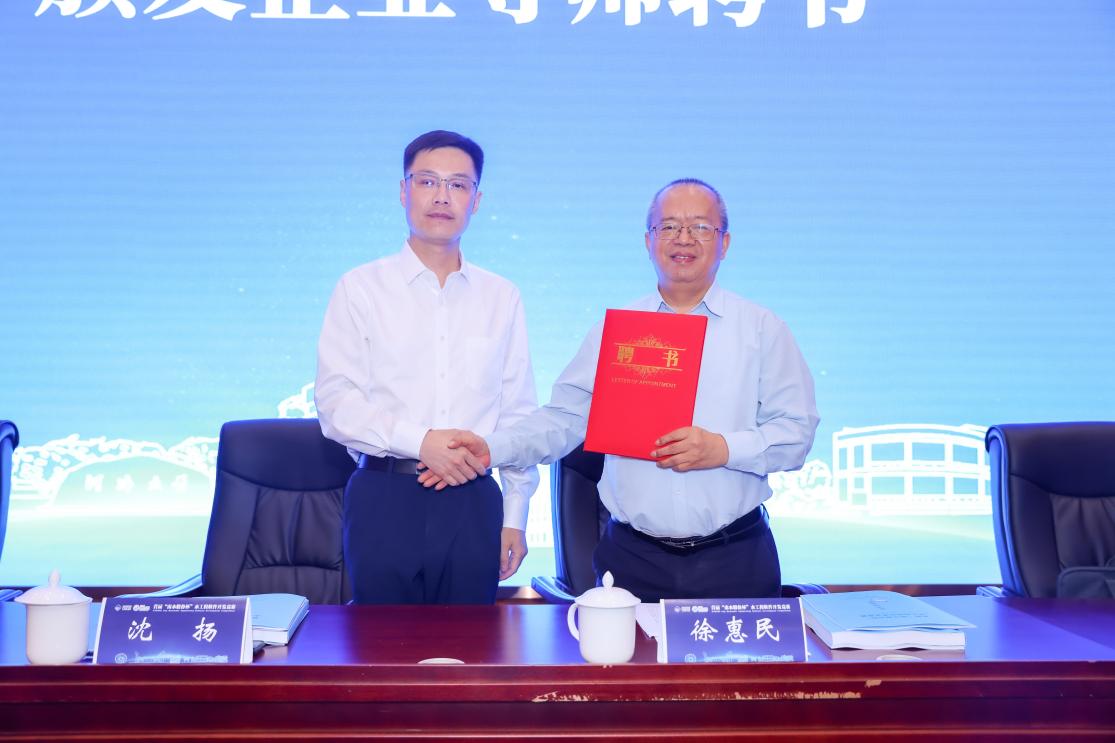 沈扬副董事长向南水股份董事长徐惠民颁发企业导师荣誉证书。