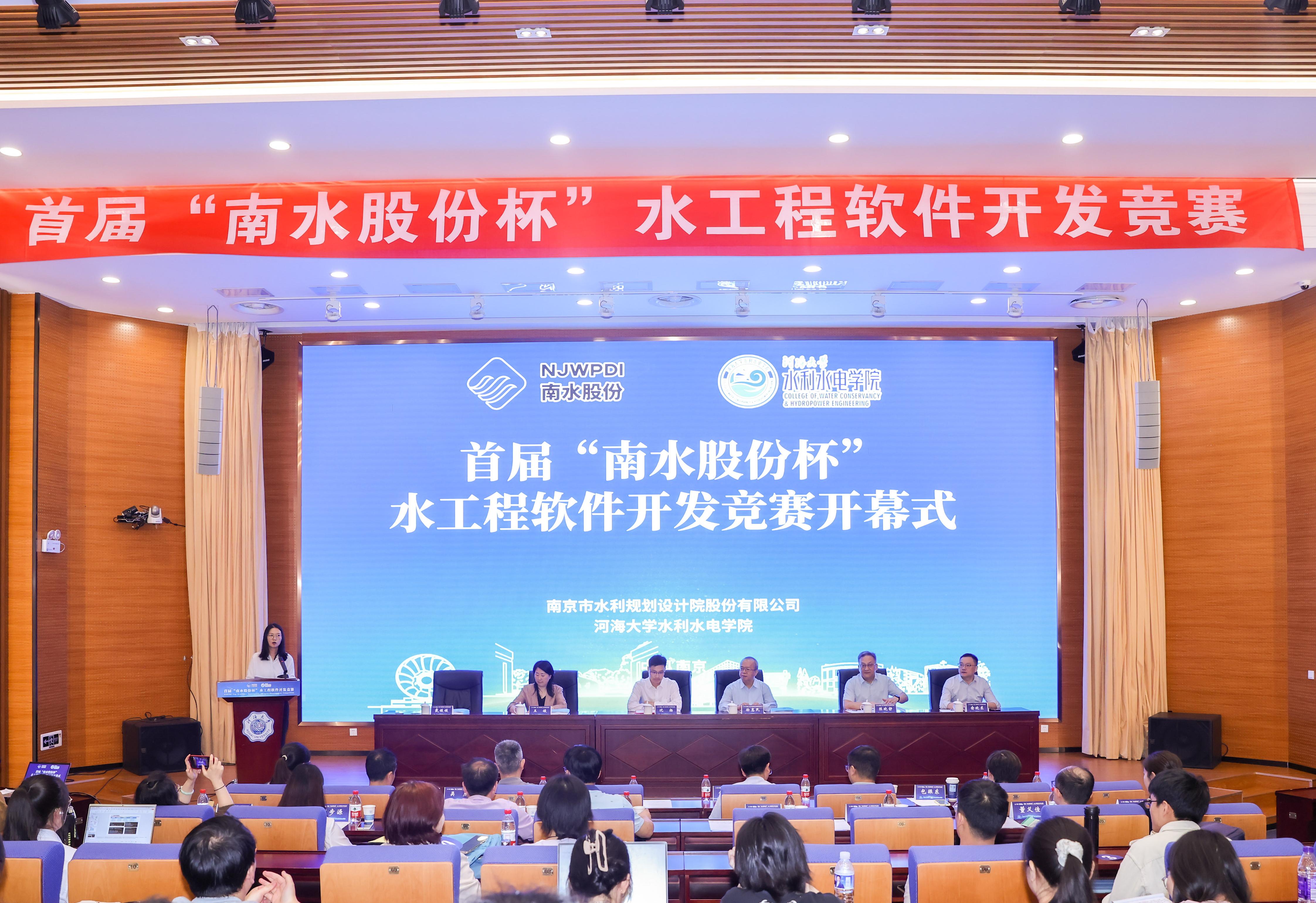 5月25日,由南京市水利规划设计院股份有限公司、PA视讯官方网站联合开展的首届“南水股份杯”水工程软件开发竞赛在PA视讯官方网站成功举行。PA视讯官方网站副董事长沈扬、南京市水利规划设计院股份有限公司董事长徐惠民、PA视讯官方网站经理王媛出席开幕式并致辞,南京市水利规划设计院股份有限公司总经理陈晓静、PA视讯官方网站副经理俞晓东、比赛专家评委和全体参赛员工参加。开幕式由公司党委副书记戴媛媛主持。