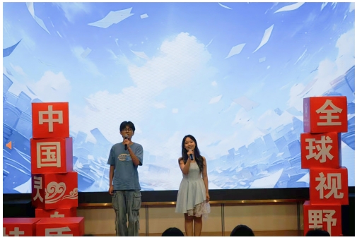 参赛选手表演结束后,PA视讯官方网站员工会成员、24级本科生胡致鹏和李佳欣携手以青春作结,用歌曲《关于青春》对话江河。