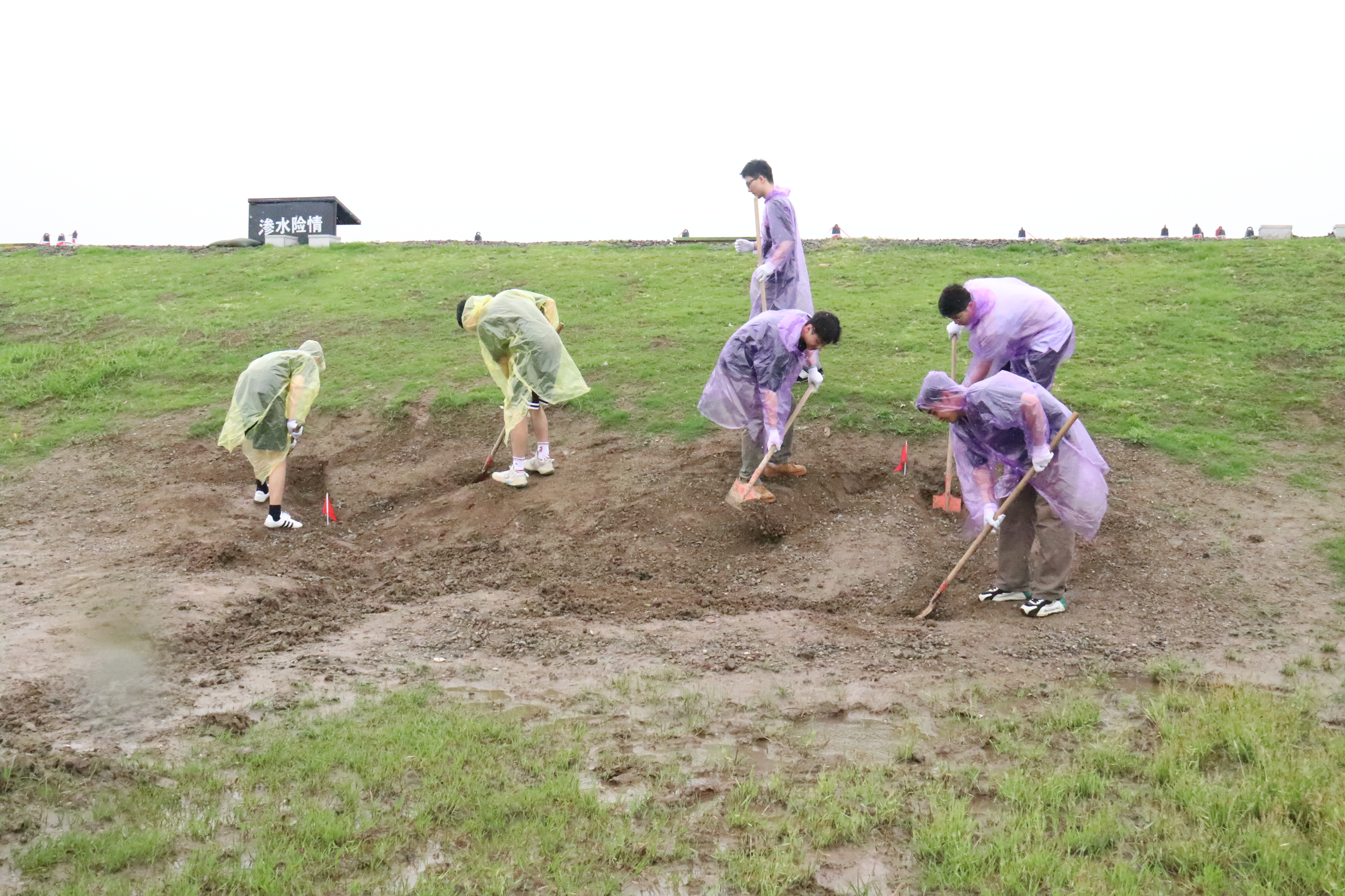 理论学习告一段落,实操环节正式拉开帷幕。面对模拟的漏洞险情,教官手持土工织物,一边演示铺设技巧,一边讲解原理:“针对临水面,铺设土工布时要保证织物紧密贴合堤身。”同学们围聚在旁,目不转睛地观察,有的踮起脚尖,有的蹲下身子,力求看清每个细节。轮到同学们实操时,大家相互配合,一组展开织物,一组跟进固定,相互配合,积极参与实践。