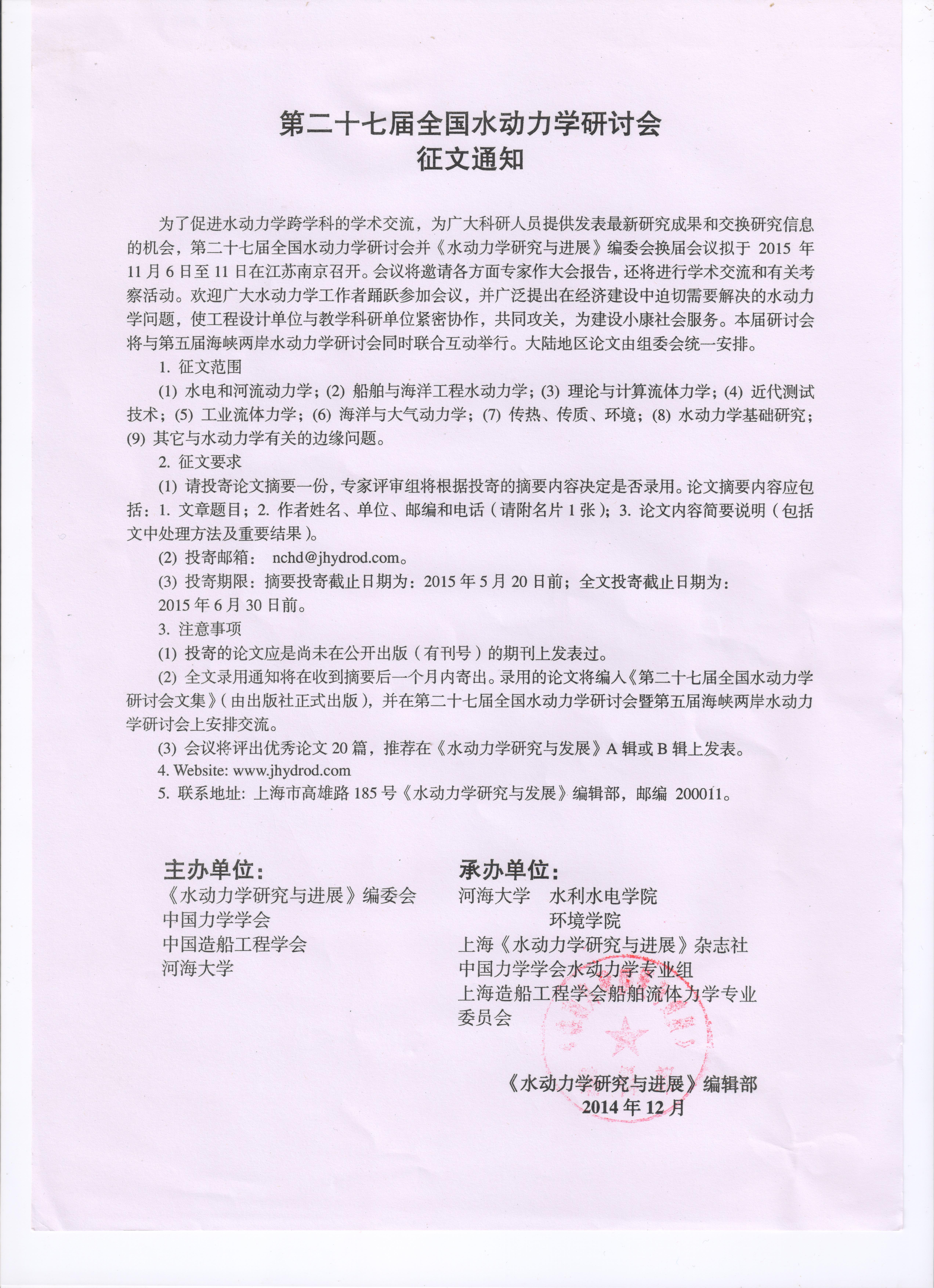 - 全国水动力学研讨会会议征文