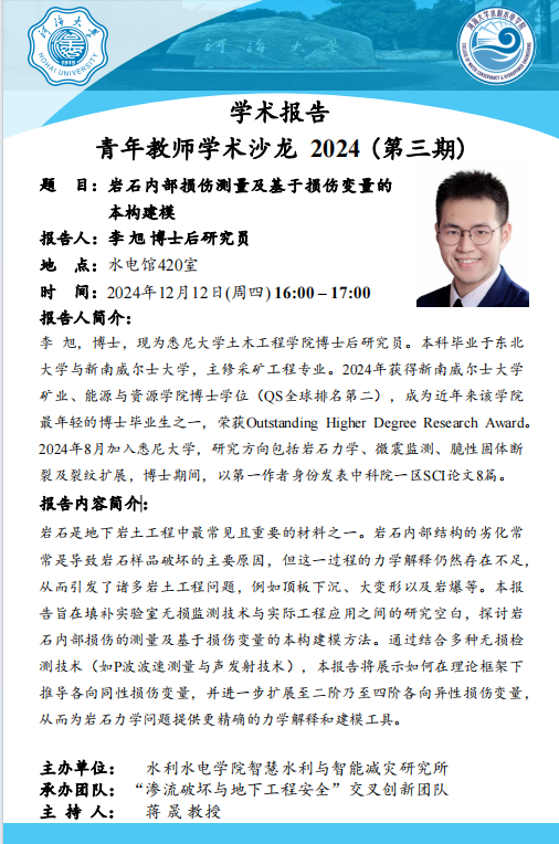 Young Teachers‘ Academic Salon | Measurement of Internal Damage in Rocks and Constitutive Modeling based on Damage Variables (Dr. Xu Li, Postdoctoral Researcher at the School of Civil Engineering, University of Sydney)